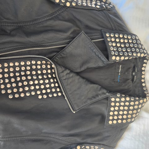 Merk: noen få nagler mangler øverst på venstre erme. Se bilder for jakkens tilstand. Dette kan enkelt fikses ved å sette på nye nagler.