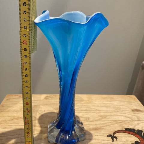 Nydelig Retro håndblåst vase fra Plum Blossom. 24 cm høy.