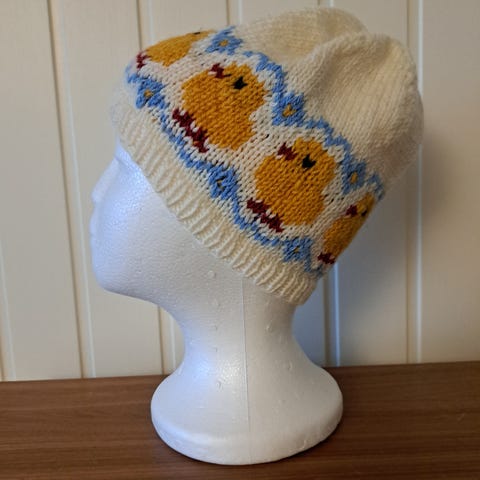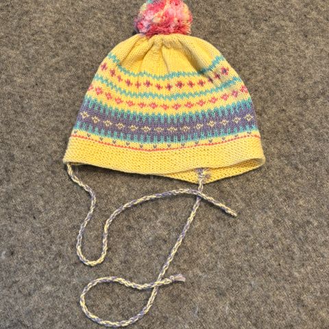 Strikket og har dusk.