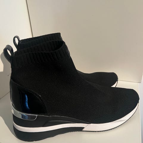 Kjempe kule i gull med glitter på hælen og i stoffet. Veldig gode på føttene. Har bare for mange :)