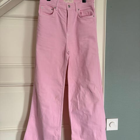 Kul bukse fra Zara i rosa. Firkantede lommer foran og bak gir retro stil. Glidelås og knapp i front. Lengde til legg. Str 40. Tykk bomulls kvalitet. Ingen bruksmerker, veldig lite brukt. Nypris kr 600. Sender gjerne til kjøper - kjøper betaler porto - eller vi kan møtes i Oslo sentrum