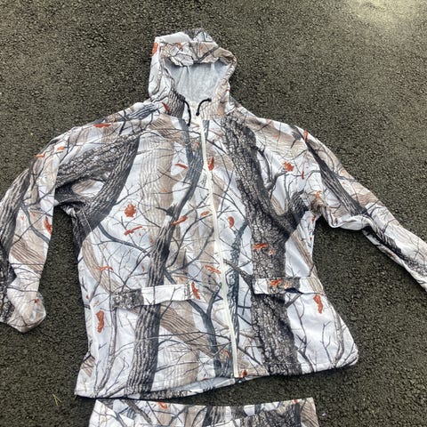 Deerhunter Sneaky overtrekk kamuflasje jakke med hette og bukser str L/XL. Meget effektiv kamuflase, frynsene utvisker kpnturene, tilnærmet lydløst materiale. Selges rimelig kr 750,- før 1190,-. Frakt kr 80,-. Kun få igjen nå.