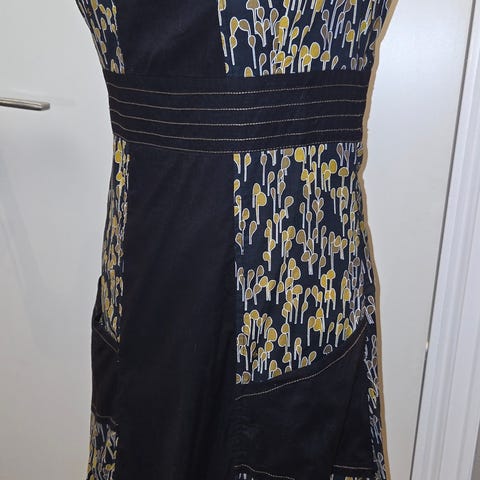Stilig og flatterende kjole fra Skunkfunk, kjøpt på den kjente butikken twister i Bergen sentrum for nokon år tilbake. Selges fordi den er litt trang til meg. Det er glidelås i siden på kjolen, og eit slag underskjørt innsydd, sjå bilde.