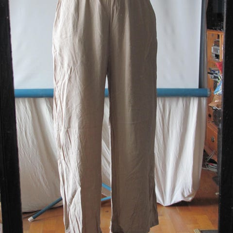 Kun brukt 1 gang! Høy midje. Beininnerlengde 78,- se beskrivelse bilde. Lin & bomull. Nydelig luftig og lett. Rette vide bein. Normal i størrelse.