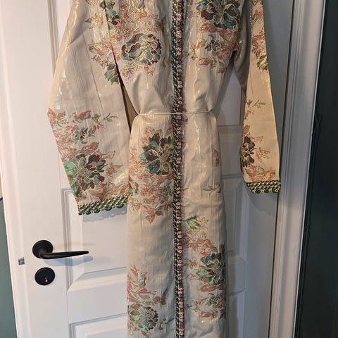 Helt ny, jeg fikk denne sydd men dessverre passet den ikke meg. Selges med bukse og sjal