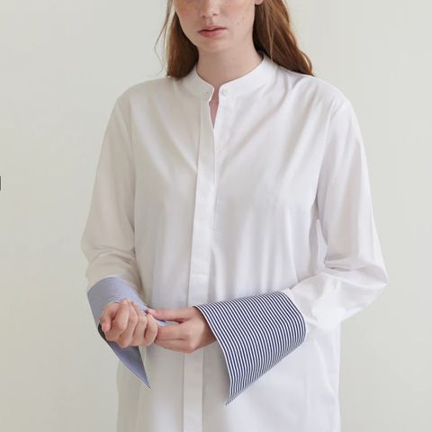 Original always works, but what if original isn’t fun enough? When Anna wakes up in the morning, it’s not the original shirt she is longing for, but something that makes her extraordinary. Nothing crazy of course (it still has to be rather conservative ) but just a small detail of a bigger and longer cuff, the cherry on top if you know what I mean? The Anna shirt has a classic cut in front, but is more interesting on the sides with slits and stiff cuffs. The arms are slightly longer. Model is wearing a size S. If you want the shirt to have a loose fit, take a size bigger. Size S. Length 69cm. Arm length 73cm. Chest 110cm. Shoulder width 40cm.