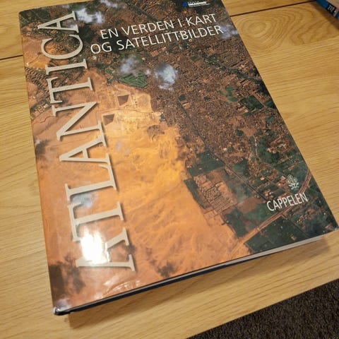 Stor og tykk bok med mange flotte kart og satelittbilder