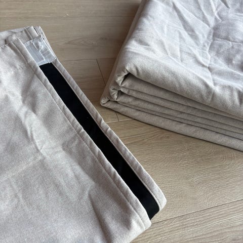Som bildene viser så mangler de rynkebånd øvers, og et sett er allerede solgt.