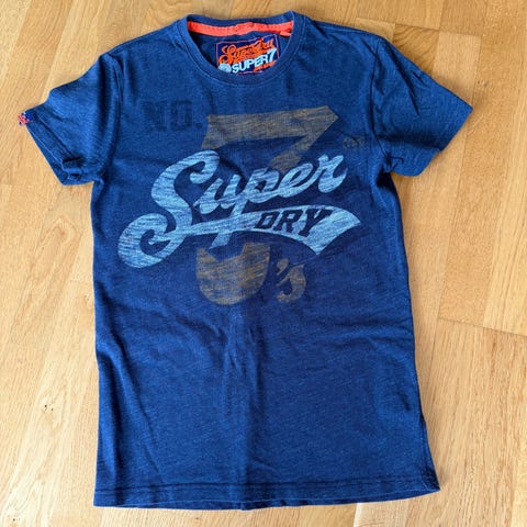 Brukt ekte Superdry t-skjorte. Ingen flekker eller lukter. Obs slitasje på hvite markeringer, se bilder. Størrelse small herre.