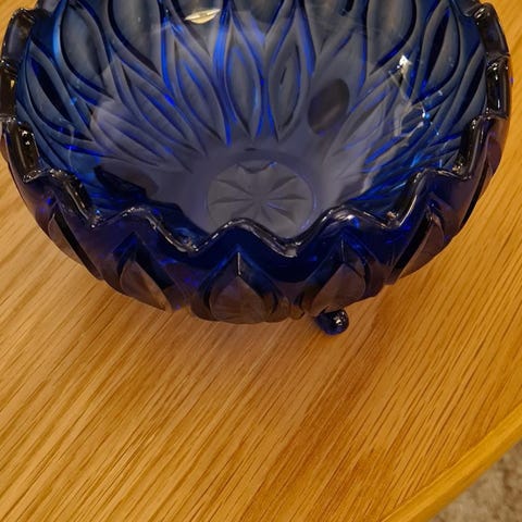 Fat i glass for 4 telys. Det er fra Murla, Finland. Design Pertti Kallionen. Ca. 32 x 23 cm.