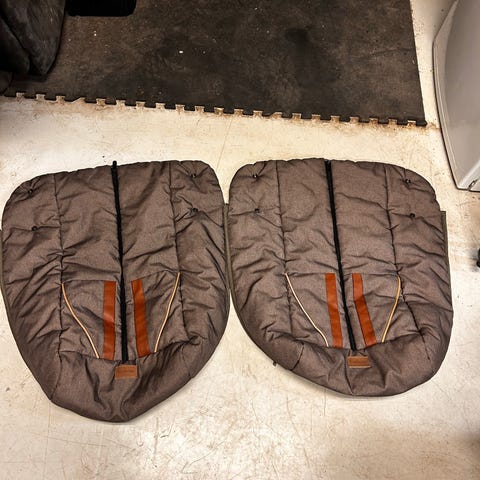 Tøypose med 4 hjultrekk til barnevogn. Beregnet til Teutonia barnevogn. Men jeg brukte de til Emmaljunga og Babyjogger vogn uten problemer. Den har snorlås, så kan reguleres til forskjellige størrelser på hjul.