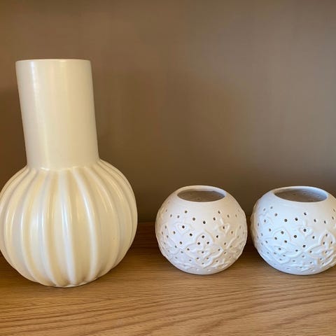 Vegg-blomsterpotte, vase, lyslykt. Passer sammen som et sett.