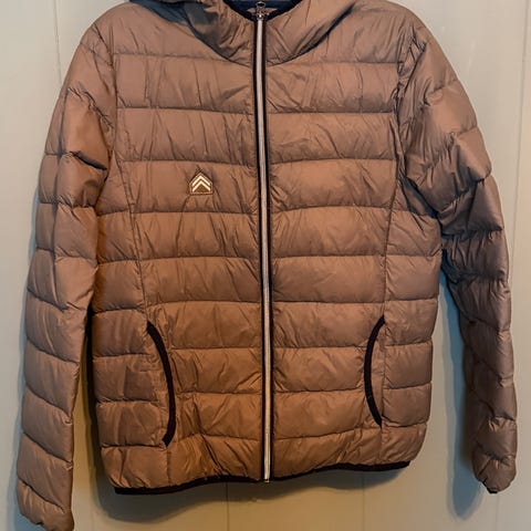 Fin blå Fransa boblejakke. Lett, varm og comfy – perfekt til hverdags i kaldt vær. Str S. (dårlig bilde )