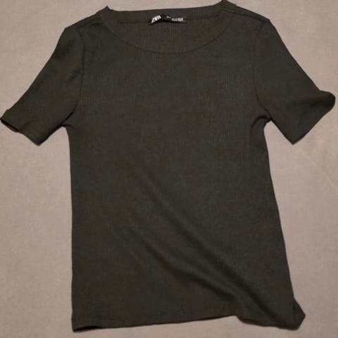 Selger en enkel og fin grå kjole i mykt og behagelig stoff.