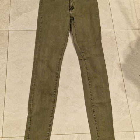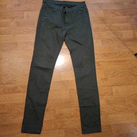Grønne tights fra Oasis med god stretch i stoffet, veldig behagelig på. Laget av en blanding av bomull, viskose, polyester og elastan. Størrelse 36-livvidde er 76 cm, skrittlengde 23 cm og indre benlengde 73 cm. Pent brukt uten flekker eller skader.
