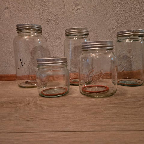 Oppbevaringsglass 100kr pr stk- d emed metall lokk solgt