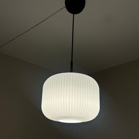 Gir behagelig blendefritt lys. Har plass for tre lyskilder (max 3 x 13w). Oppheng og 1,5 m ledning.