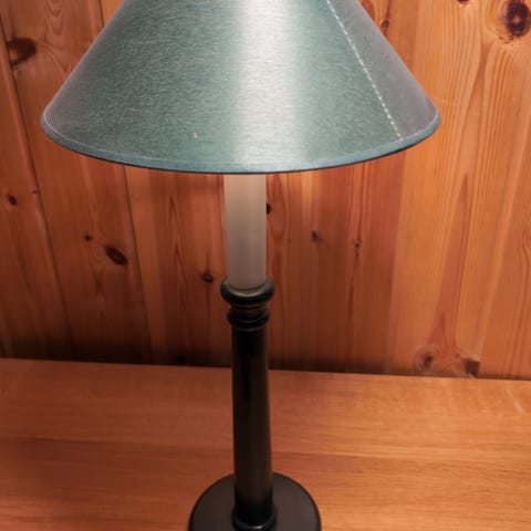 Skjerm bør renses. Ikke flekker, men en del støv. Bryter på pæreholder på den uten skjerm må fikses. Klikker ikke. Kanskje bare en løs fjær? .