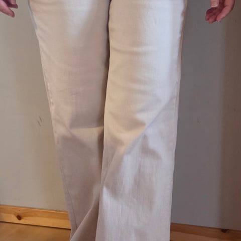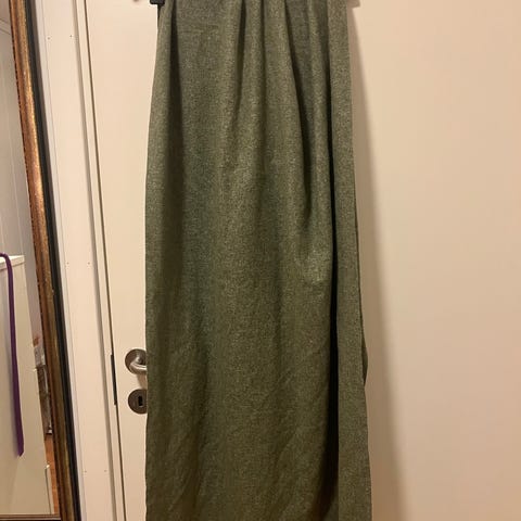 Pent skjørt i a-fasong med gullfargede metallknapper. Foret, 100% polyester. Stort i størrelsen, 41 cm målt tvers over midjen lagt flatt. 46 cm langt.
