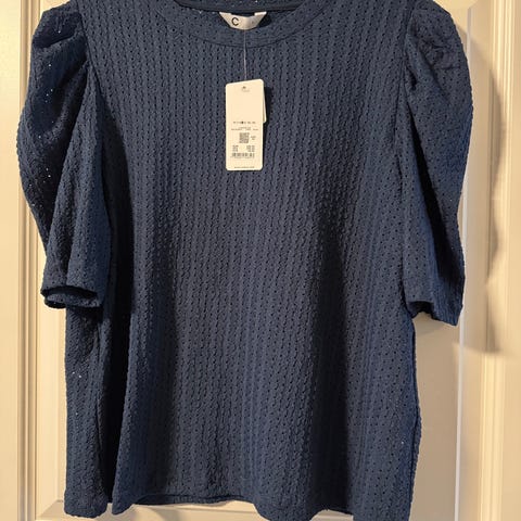 Helt ubrukt blå Object blondetopp fra klesbutikken Olivia’s Verden på Ski storsenter selges.