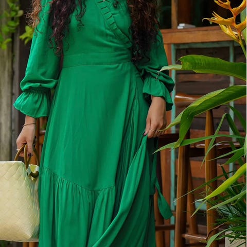 Selskapskjole i grønn selges. Brukt ute en gang.