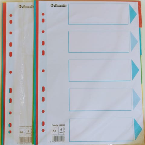 Rekvisita / kontorrekvisita: to pakker med solide skilleark / registerark i plast selges.