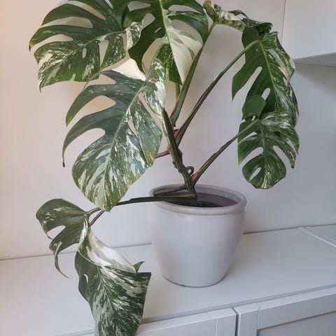 Frisk vokse villig Monstera Deliciosa Thai Albo Variegata, med nye skudd