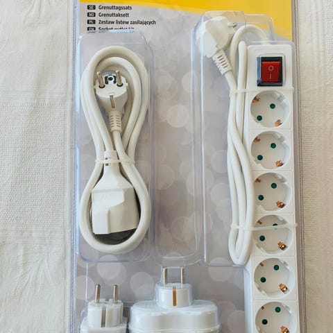 - 2 stykk 6 veis uten bryter, 1,5 m ledning