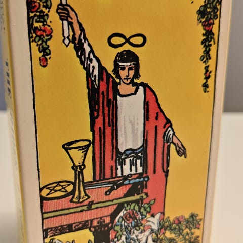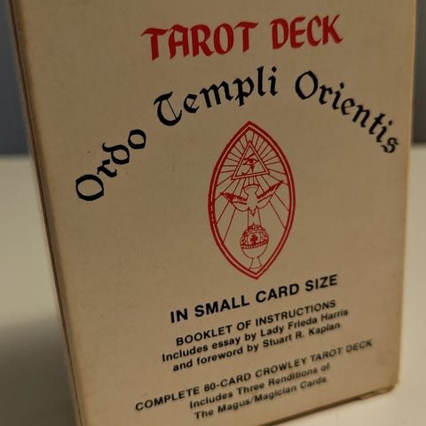En tarotkortstokk i denne klassiske, historiske utførelsen. Uåpnet, fremdeles i plasten.