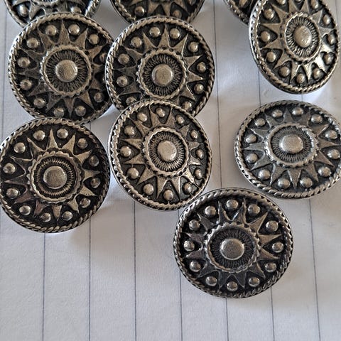 6 fine, gamle tinnknapper fra Tinn-Per selges 200,- ca 25 mm
