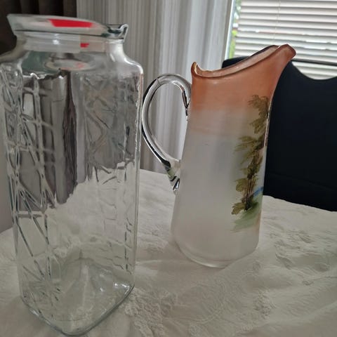 Veldig pen vannmugge med praktisk desilitermål på. Kun stått til pynt.