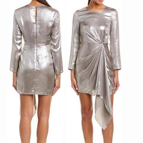 Pent brukt sølv kimono kjole fra Zara i str.XS selges. En liten løs tråd som knapt syntes, se siste bilde. Superkul kjole. Kan hentes eller sendes
