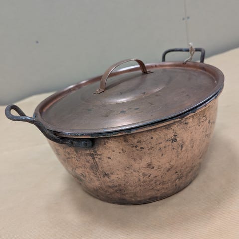 Gammel "grøt kjele i kobber" m/lokk, sjelden vare