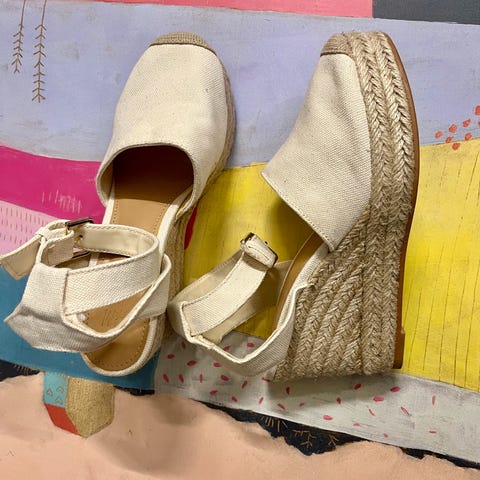 Sommersko med kilehel. Meget gode å gå i, fin høyde.