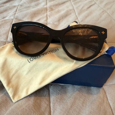 Selger mine pent brukte Louis Vuitton solbriller da de ikke blir brukt. På siden henger det en LV charm som kan byttes ut eller tas av. Uten bruksmerker, dustbag, etui, orginal boks og kvittering + bevis følger med ☺️ kjøpt for et år siden for 10.000kr på Louis Vuitton på Rodeo drive.