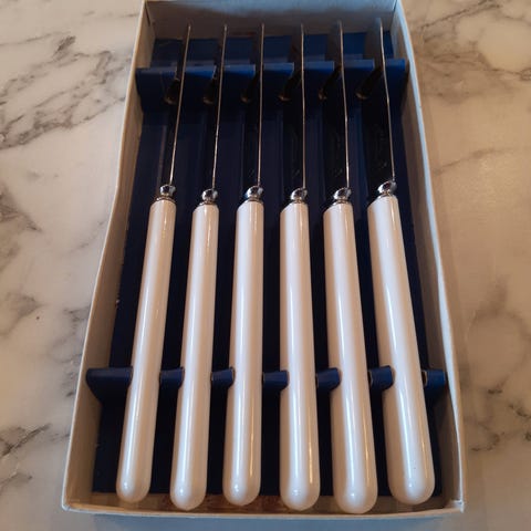 Ingen nagg eller hakk, men har en liten flekk (synes vel på bilde) på skålkanten, og en flekk på stetten med litt fargenyanse(skyldes nok produksjonsfeil)