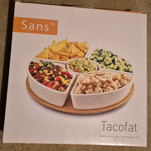 Ubrukte tacofat/tapasfat. Ca. 28,5 cm. i diameter. Har 2 stk.
