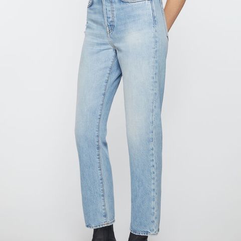 Acne Mece jeans i størrelse W26 L32 med distressed look, dvs. enkelte slitte partier (som var sånn da jeansen ble kjøpt). Oppleves som normal i størrelsen. 100% bomull, og ingen stretch. Litt cropped lengde. Farge: beathen white (kremhvit/gulhvit). Lite brukt, og i fin stand.