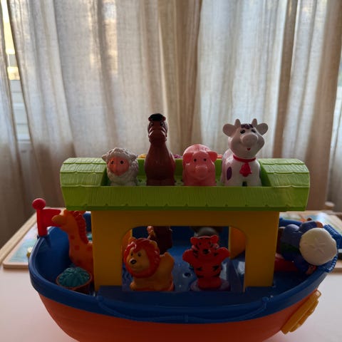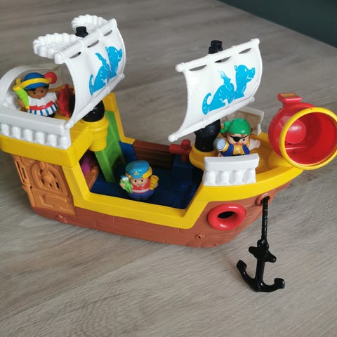 Når man trykker på den lilla knappen lager båten 4 korte lyd og melodier.