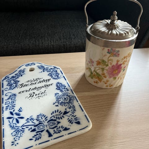 kakegafler , 1 stk sauseause, 3 stk anretnings skjeer og 1 stk anretnings gaffel, trenger en puss, Selges samlet kr 1500.