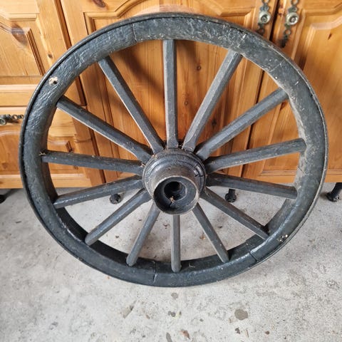 Gammelt kjerrehjul selges. Diameter ca 66 cm. Kan leveres i Oslo-området eller sendes