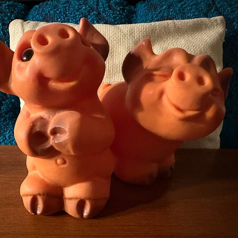 Vintage Sparebørser Pensjonsfond. Bestemor og bestefar i gyngestol.