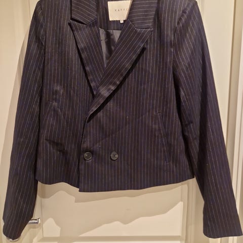 Dressjakke mørk blå kort modell, str. XS, men passer fint til dame str. 38-40.