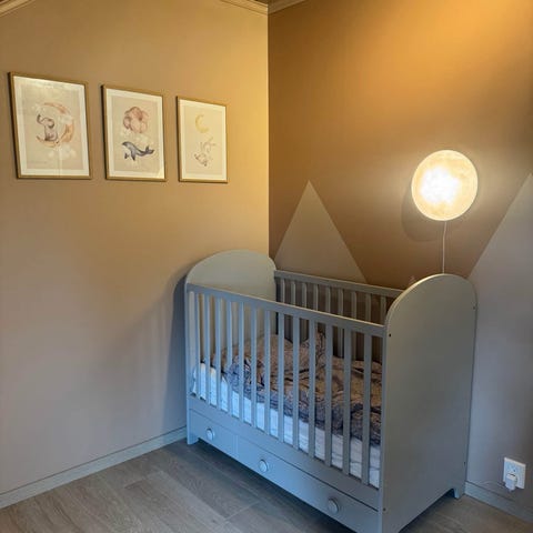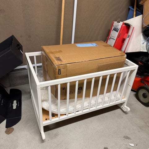 Babyseng, som er praktisk å ha den første tiden med babyen. Lite brukt. Farge: grå