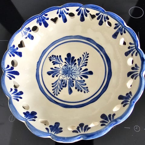 Ny pris: RETRO mindre keramikk skål med håndtak av metall og plast.