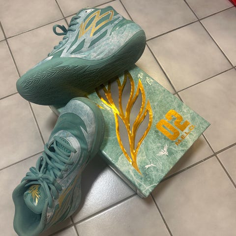 LaMelo Ball’s third signature shoe MB.03. Slime inspired rubber wrap-ups and engineered knit upper with scratch cutouts, the MB.03 is an inspirational trainer. The slime sole and space-age PUMA Hoops tech, including NITRO foam, makes you tournament ready. First to see it will definitely buy it.Size 40.5 (UK7).