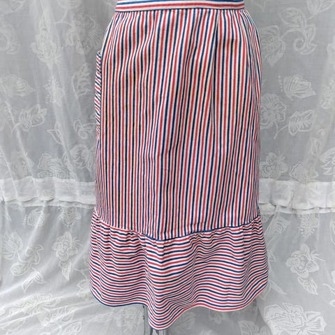 Vintage blyantskjørt med klassiske striper. Passer størrelse S (midje 70 cm, hofter 94 cm). Elegant og tidløst, perfekt til jobb, fest eller hverdagsbruk.