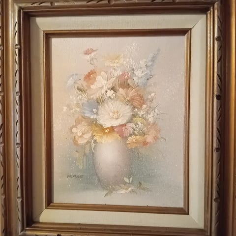 Vakkert bilde. Høy kvalitet på arbeidet og innrammingen. Fine farger. Meget god stand. Som nytt. Bare hengt på en vegg i mange år. Høyde 43cm. Bredde 39cm. Signert.