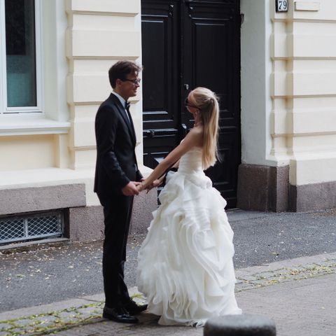 Selger en Vera Wang Brudekjole str S. Har blitt justert rundt hoftene av skredder.
