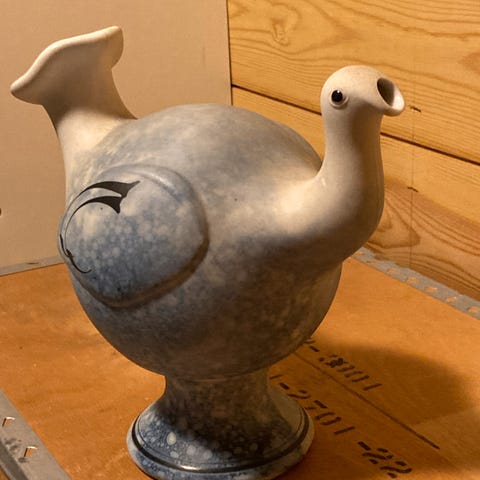 To identiske vinhøner fra Porsgrunn Porselen.